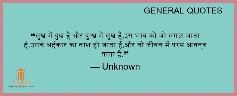 सुख में दुख हैं और दुःख में सुख है,इस भाव को जो समझ जाता है,उसके अहंकार का नाश हो जाता हैं,और वो जीवन में परम आनन्द पाता हैं.