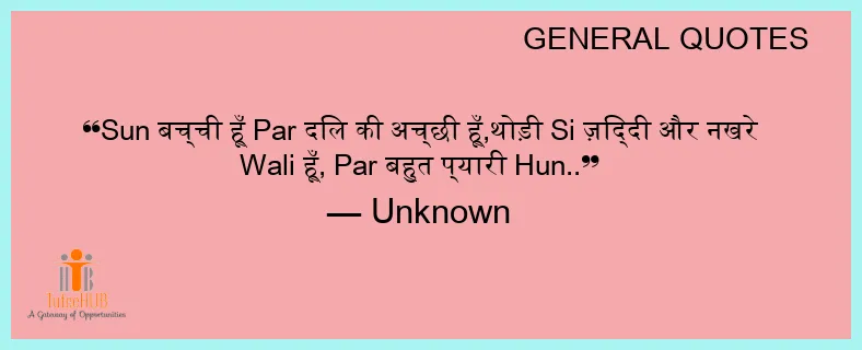 SUN बच्ची हूँ PAR दिल की अच्छी हूँ,थोड़ी Si ज़िद्दी और नखरे Wali हूँ, Par बहुत प्यारी Hun..