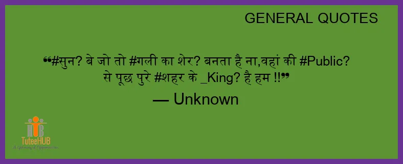 #सुन? बे जो तो #गली का शेर? बनता है ना,वहां की #PUBLIC? से पूछ पुरे #शहर के _King? है हम !!
