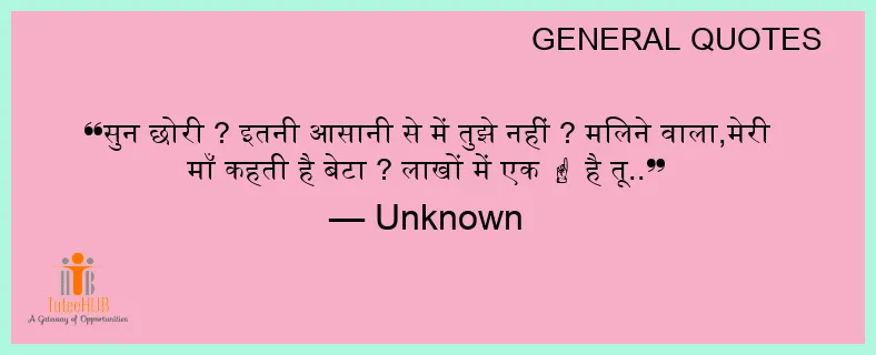 सुन छोरी ? इतनी आसानी से में तुझे नहीं ? मिलने वाला,मेरी माँ कहती है बेटा ? लाखों में एक ☝ है तू..