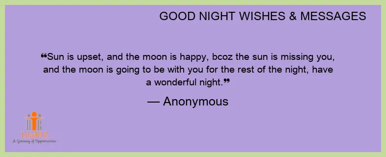 Sun is upset, and the moon is happy, bcoz the sun is missing you, and the moon is going to be with you for the rest of the night, have a wonderful night.
