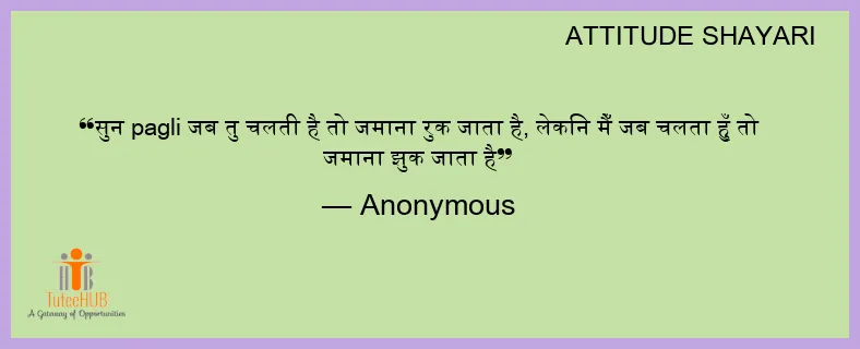 सुन pagli जब तु चलती है तो जमाना रुक जाता है, लेकिन मैँ जब चलता हुँ तो जमाना झुक जाता है