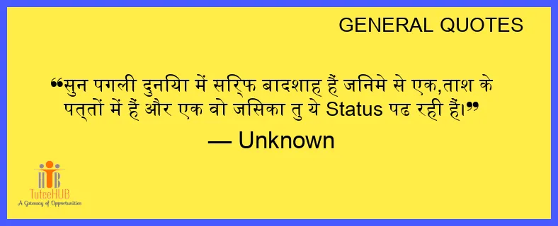 सुन पगली दुनिया में सिर्फ बादशाह हैं जिनमे से एक,ताश के पत्तों में हैं और एक वो जिसका तु ये Status पढ रही हैं।