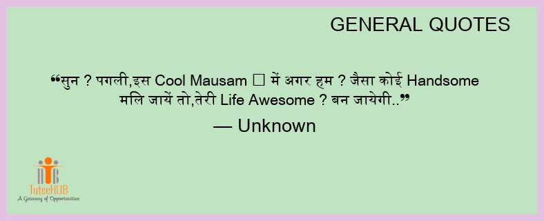 सुन ? पगली,इस Cool Mausam ⛈ में अगर हम ? जैसा कोई HANDSOME मिल जायें तो,तेरी Life Awesome ? बन जायेगी..