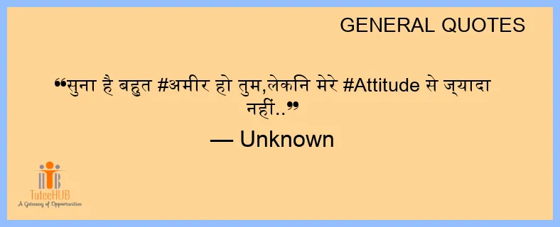 सुना है बहुत #अमीर हो तुम,लेकिन मेरे #Attitude से ज्यादा नहीं..