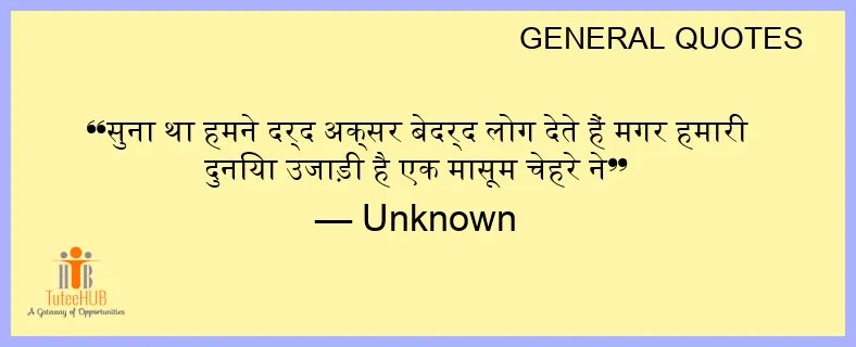 सुना था हमने दर्द अक्सर बेदर्द लोग देते हैं मगर हमारी दुनिया उजाड़ी है एक मासूम चेहरे ने