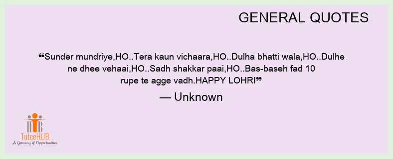 Sunder mundriye,HO..TERA kaun vichaara,HO..Dulha bhatti wala,HO..Dulhe NE dhee vehaai,HO..Sadh shakkar paai,HO..Bas-baseh fad 10 rupe te agge vadh.HAPPY LOHRI