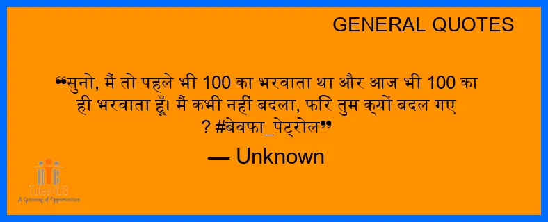 सुनो, मैं तो पहले भी 100 का भरवाता था और आज भी 100 का ही भरवाता हूँ। मैं कभी नहीं बदला, फिर तुम क्यों बदल गए ? #बेवफा_पेट्रोल