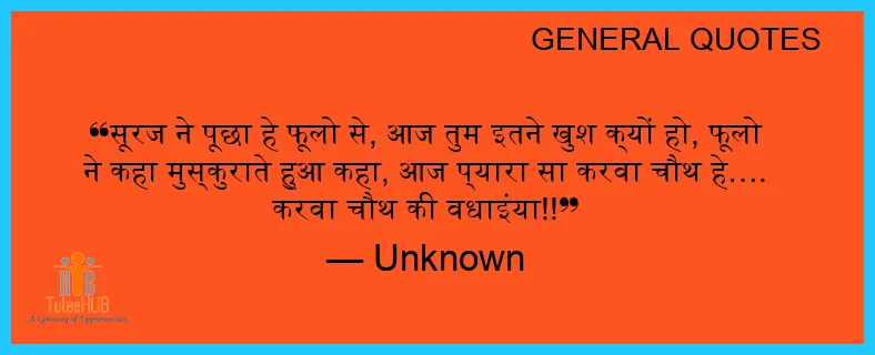 सूरज ने पूछा हे फूलो से, आज तुम इतने खुश क्यों हो, फूलो ने कहा मुस्कुराते हुआ कहा, आज प्यारा सा करवा चौथ हे…. करवा चौथ की वधाइंया!!