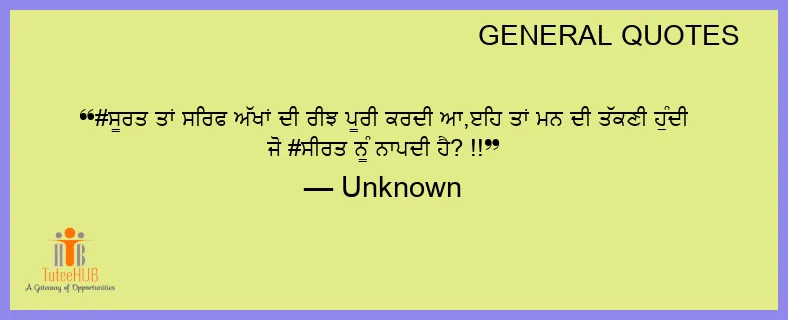 #ਸੂਰਤ ਤਾਂ ਸਿਰਫ ਅੱਖਾਂ ਦੀ ਰੀਝ ਪੂਰੀ ਕਰਦੀ ਅਾ,ੲਿਹ ਤਾਂ ਮਨ ਦੀ ਤੱਕਣੀ ਹੁੰਦੀ ਜੋ #ਸੀਰਤ ਨੂੰ ਨਾਪਦੀ ਹੈ? !!