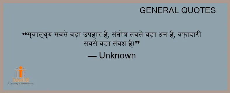 स्वास्थ्य सबसे बड़ा उपहार है, संतोष सबसे बड़ा धन है, वफ़ादारी सबसे बड़ा संबध है।