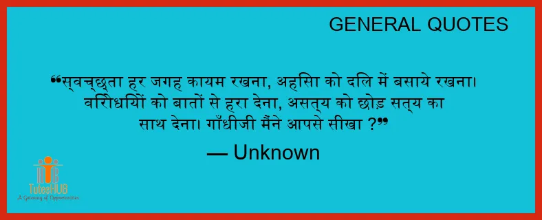 स्वच्छ्ता हर जगह कायम रखना, अहिंसा को दिल में बसाये रखना। विरोधियों को बातों से हरा देना, असत्य को छोड़ सत्य का साथ देना। गाँधीजी मैंने आपसे सीखा ?