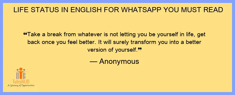 Take a break from whatever is not letting you be yourself in life, get back once you feel better. It will surely transform you into a better version of yourself.