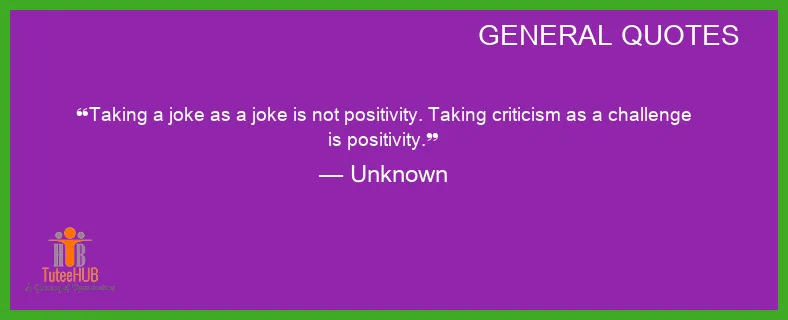 TAKING a JOKE as a joke is not POSITIVITY. Taking CRITICISM as a CHALLENGE is positivity.