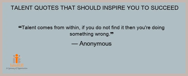 Talent comes from within, if you do not find it then you're doing something wrong.