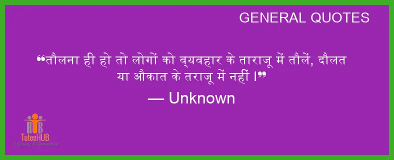 तौलना ही हो तो लोगों को व्यवहार के ताराजू में तौलें, दौलत या औकात के तराजू में नहीं I