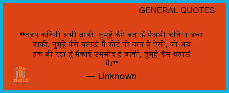 तड़प कितनी अभी बाकी, तुम्हें कैसे बताऊँ मैंअभी कितना बचा बाकी, तुम्हें कैसे बताऊँ मैं कोई तो बात है ऐसी, जो अब तक जी रहा हूँ मैंकोई उम्मीद है बाकी, तुम्हें कैसे बताऊँ मैं।