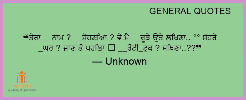 ਤੇਰਾ __ਨਾਮ ? __ਸੋਹਣਿਅਾ ? ਵੇ ਮੈ __ਚੂੜੇ ੳੁਤੇ ਲਿਖਣਾ.. °° ਸੋਹਰੇ _ਘਰ ? ਜਾਣ ਤੋਂ ਪਹਿਲਾਂ ⬅ __ਰੋਟੀ_ਟੁਕ ? ਸਿਖਣਾ..??