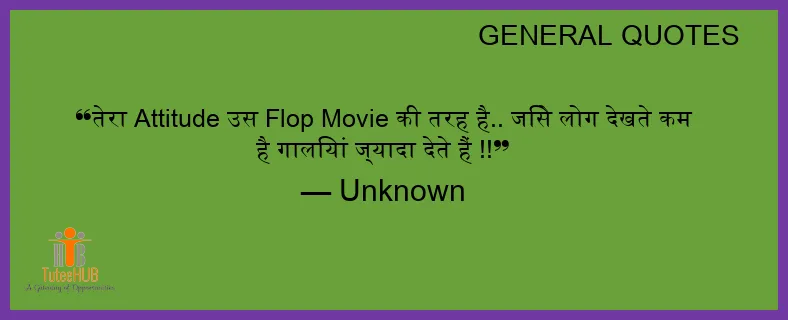 तेरा ATTITUDE उस FLOP Movie की तरह है.. जिसे लोग देखते कम है गालियांं ज्यादा देते हैं !!