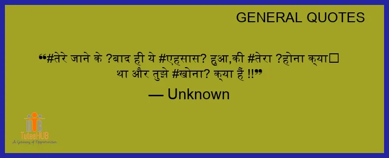 #तेरे जाने के ?बाद ही ये #एहसास? हुआ,की #तेरा ?होना क्या❓ था और तुझे #खोना? क्या हैं !!
