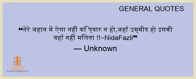 तेरे जहान में ऐसा नहीं कि प्यार न हो,जहाँ उम्मीद हो इसकी वहाँ नहीं मिलता !!~NidaFazli