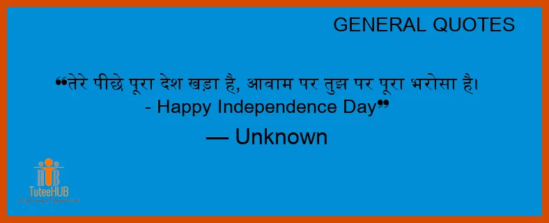 तेरे पीछे पूरा देश खड़ा है, आवाम पर तुझ पर पूरा भरोसा है। - Happy INDEPENDENCE Day