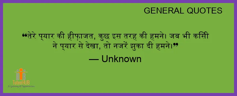 तेरे प्यार की हीफ़ाजत, कुछ इस तरह की हमने। जब भी किसी ने प्यार से देखा, तो नजरें झुका दी हमने।
