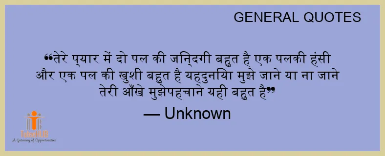 तेरे प्यार में दो पल की जिन्दगी बहुत है एक पलकी हंसी और एक पल की खुशी बहुत है यहदुनिया मुझे जाने या ना जाने तेरी आँखे मुझेपहचाने यही बहुत है