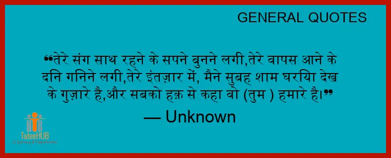 तेरे संग साथ रहने के सपने बुनने लगी,तेरे वापस आने के दिन गिनने लगी,तेरे इंतज़ार में, मैने सुबह शाम घरिया देख के गुज़ारे है,और सबको हक़ से कहा वो (तुम ) हमारे है।