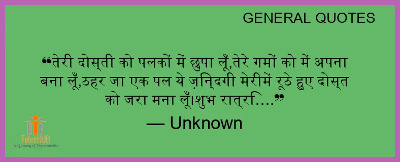 तेरी दोस्ती को पलकों में छुपा लूँ,तेरे गमों को में अपना बना लूँ,ठहर जा एक पल ये ज़िन्दगी मेरीमें रूठे हुए दोस्त को जरा मना लूँ।शुभ रात्रि….