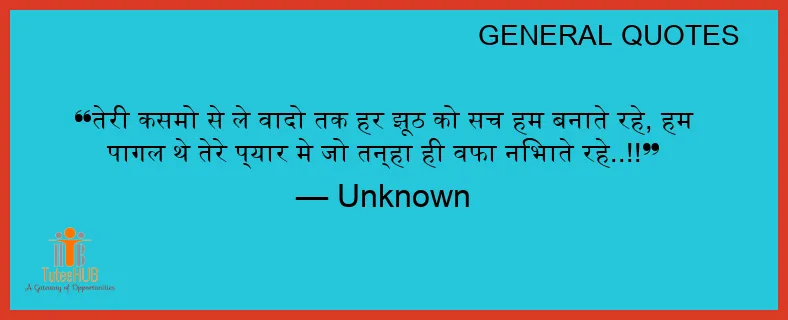 तेरी कसमो से ले वादो तक हर झूठ को सच हम बनाते रहे, हम पागल थे तेरे प्यार मे जो तन्हा ही वफा निभाते रहे..!!