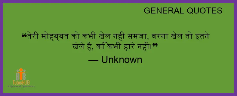 तेरी मोहब्बत को कभी खेल नही समजा, वरना खेल तो इतने खेले है, कि कभी हारे नही।