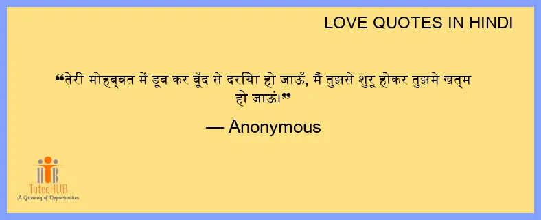 तेरी मोहब्बत में डूब कर बूँद से दरिया हो जाऊँ, मैं तुझसे शुरू होकर तुझमे खत्म हो जाऊं।