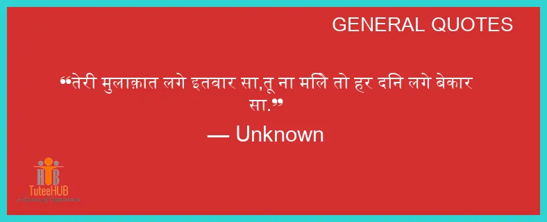तेरी मुलाक़ात लगे इतवार सा,तू ना मिले तो हर दिन लगे बेकार सा.