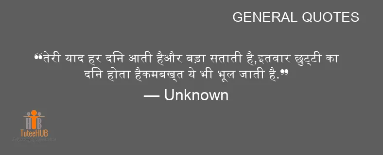 तेरी याद हर दिन आती हैऔर बड़ा सताती है,इतवार छुट्टी का दिन होता हैकमबख्त ये भी भूल जाती है.