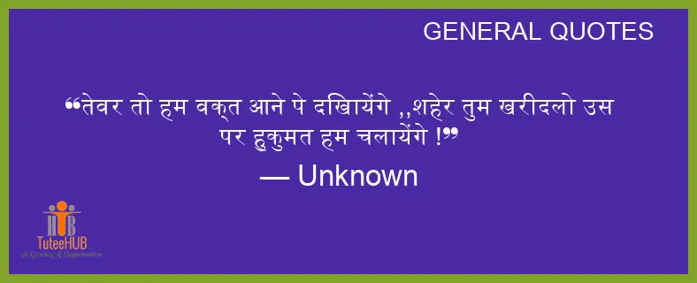 तेवर तो हम वक्त आने पे दिखायेंगे ,,शहेर तुम खरीदलो उस पर हुकुमत हम चलायेंगे !