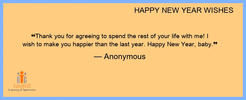 Thank you for agreeing to spend the rest of your life with me! I wish to make you happier than the last year. Happy New Year, baby.