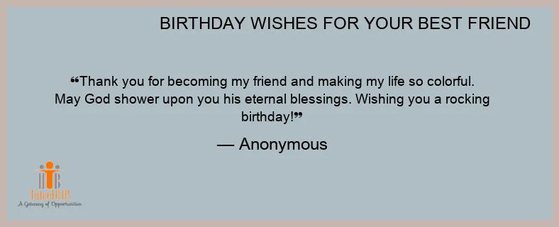 Thank you for becoming my friend and making my life so colorful. May God shower upon you his eternal blessings. Wishing you a rocking birthday!