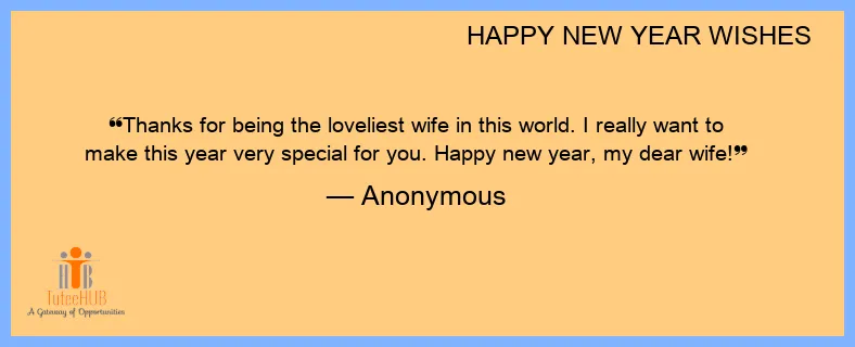 Thanks for being the loveliest wife in this world. I really want to make this year very special for you. Happy new year, my dear wife!