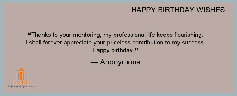 Thanks to your mentoring, my professional life keeps flourishing. I shall forever appreciate your priceless contribution to my success. Happy birthday.