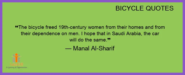 The BICYCLE freed 19th-century women from their homes and from their dependence on MEN. I hope that in Saudi Arabia, the CAR will do the same.