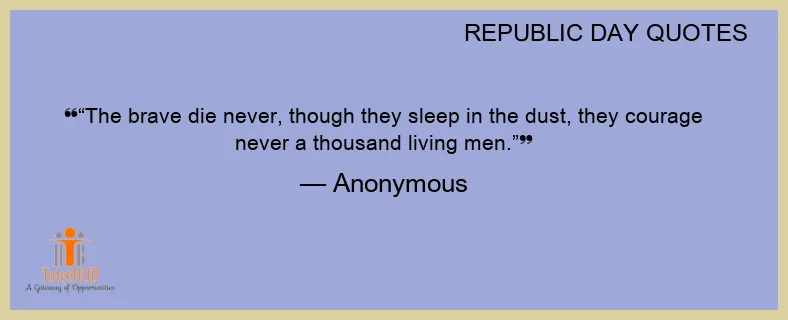 “The brave die never, though they sleep in the dust, they courage never a thousand living men.”