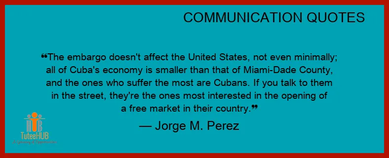 The embargo doesn't affect the United States, not even minimally; all of Cuba's economy is smaller than that of Miami-Dade COUNTY, and the ONES who suffer the most are Cubans. If you TALK to them in the street, they're the ones most interested in the opening of a free MARKET in their COUNTRY.