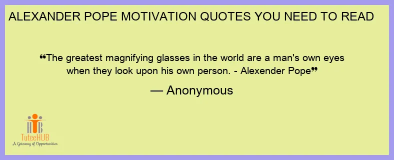 The greatest magnifying glasses in the world are a man's own eyes when they look upon his own person. - Alexender Pope