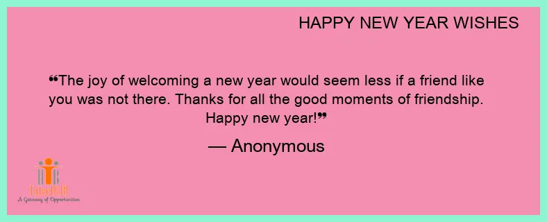The joy of welcoming a new year would seem less if a friend like you was not there. Thanks for all the good moments of friendship. Happy new year!