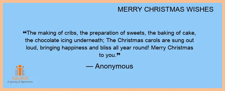 The making of cribs, the preparation of sweets, the baking of cake, the chocolate icing underneath; The Christmas carols are sung out loud, bringing happiness and bliss all year round! Merry Christmas to you.