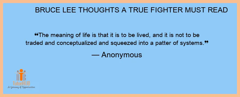The meaning of life is that it is to be lived, and it is not to be traded and conceptualized and squeezed into a patter of systems.