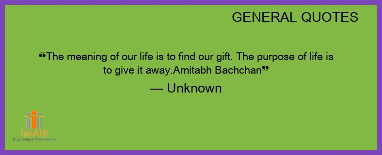 The meaning of our life is to FIND our gift. The PURPOSE of life is to GIVE it away.Amitabh Bachchan