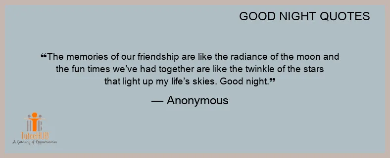 The memories of our friendship are like the radiance of the moon and the fun times we’ve had together are like the twinkle of the stars that light up my life’s skies. Good night.