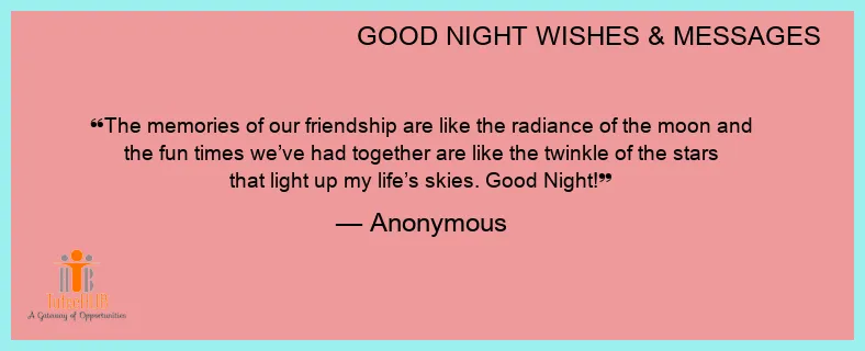 The memories of our friendship are like the radiance of the moon and the fun times we’ve had together are like the twinkle of the stars that light up my life’s skies. Good Night!